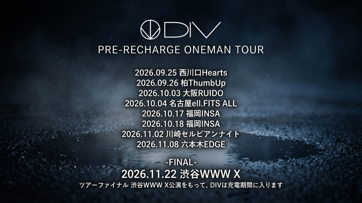 ※2026年11月22日(日)渋谷WWW X 公演を持ってDIVは充電期間に入ります